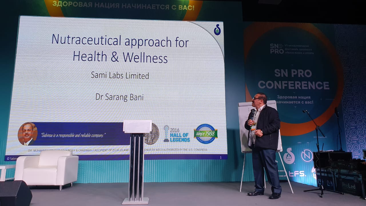 Sabinsa presented the topic of Nutraceutical Approach for Health and wellness. Dr. Sarang Bani presented the topics to audience on Sabinsa core products for Russia - Curcumin C3 Complex®, ForsLean®, Boswellin®, Sabeet®, Saberry®, DigeZyme®, BioPerine® and Nigellin®. Anchoring in Russian translation was Mr. Ivan Perepelkin, Director, Invita Trade Ltd, Moscow. The Audience appreciated the presentation and the quality of Sabinsa Products was acknowledged.