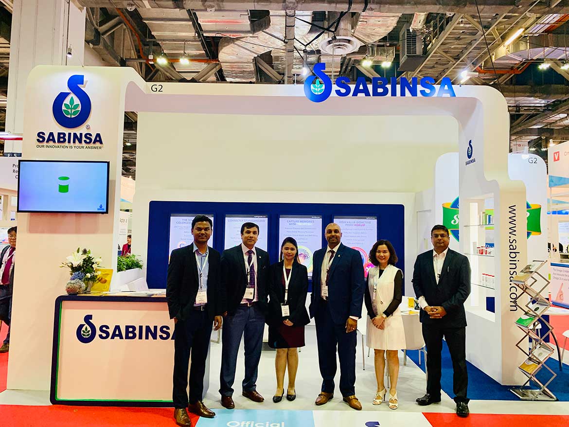 VitaFoods Asia 2019 #VFA19 once again saw Sabinsa as the official Curcumin Sponsor for the show. Visitors from South East Asia and elsewhere also was enlightened about some new offerings taking place with Sabinsa. These included Livinol® (liver health) and TinoFolin (memory/cognition), along with Shagandha™, the correctly standardized Ashwagandha and Curcumin C3 Reduct®, the reductive metabolite of curcuminoids. Sabinsa was honored with the Tasting Centre award for the best tasting functional beverage from the VitaFoods group, the beverage at hand was Curcumin C3 Power liquid shots, a delicious mango-flavored curcumin drink.